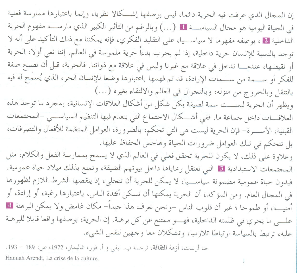 صاحب النص على حجة التقابل بين الحرية في معناها الحديث في مقابل المعنى