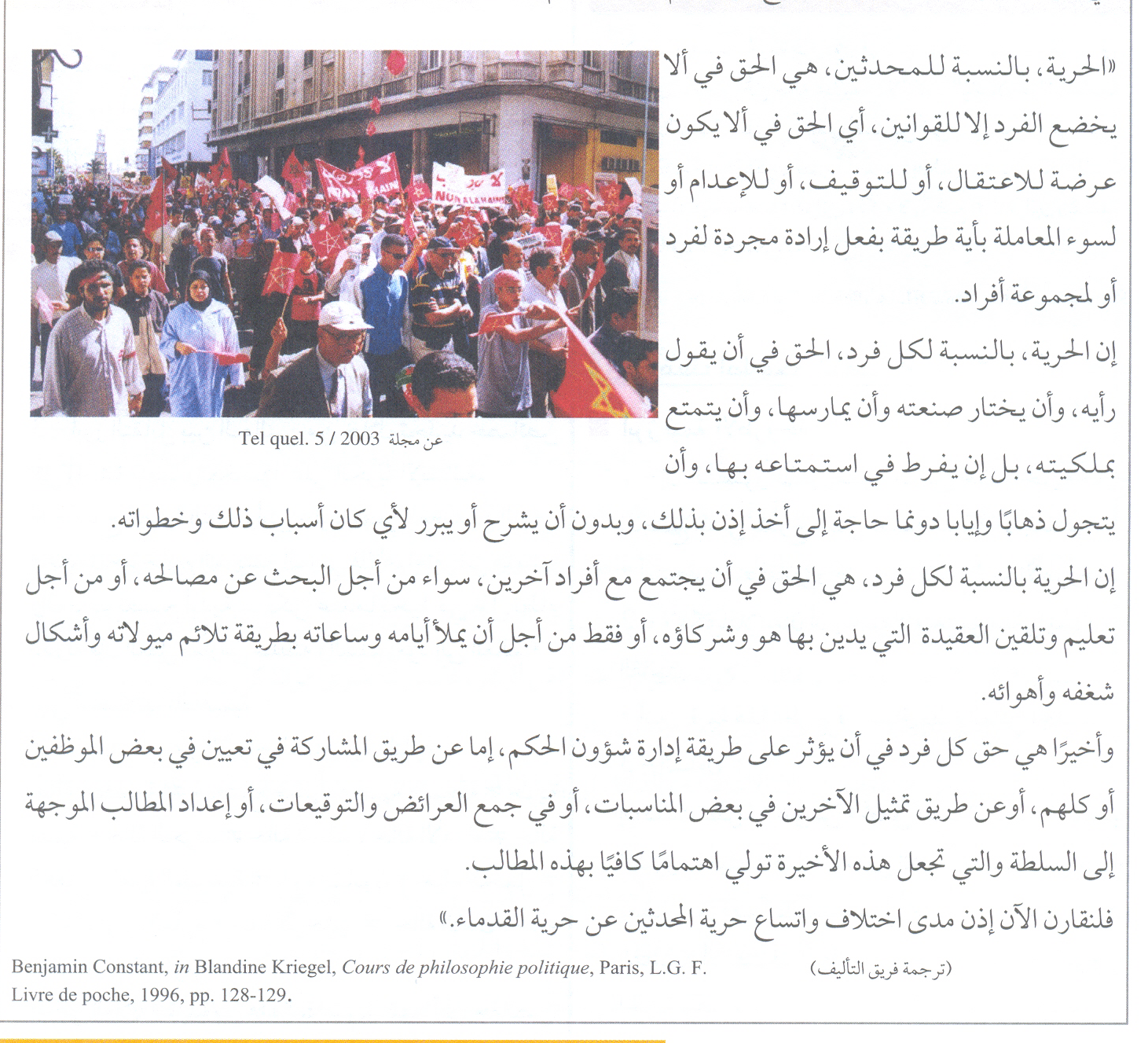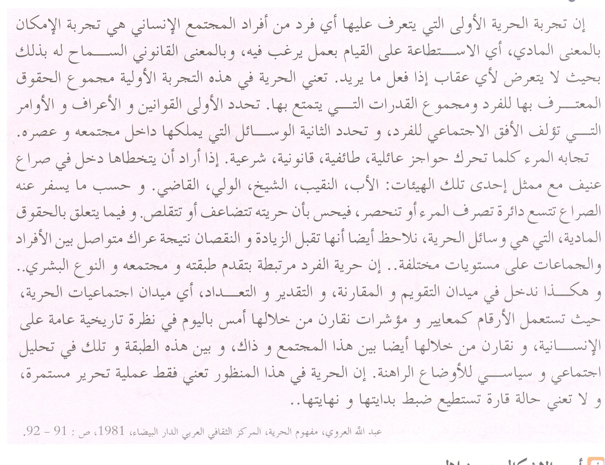 الغربية . ويرى العروي في هذا النص أن سبب إنبعات الإهتمام مجددا بمسألة الحرية